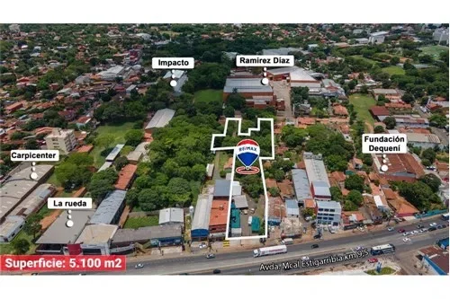 ¡ EN VENTA !! TERRENO DE 5.100 M2 EN FERNANDO DE LA MORA sobre RUTA MCAL ESTIGARRIBIA KM 9 Amplio terreno comercial de calle a calle !! En la extraordinaria zona comercial entre Salemma Super Center y Supermercado El Pueblo. ¡¡ Ideal para grandes emprendimientos !! ▪Frente sobre Mcal Estigarribia (20 mts) ▪Contrafrente sobre la calle Raúl Díaz de Espada (12 mts / 11 mts) ▪En total son 7 terrenos. Cada uno con su ccc. ▪️Tiene forma de polígono irregular ▪️Superficie de terreno: 5.100 m2 ???? Monto de la inversión USD *** (215 USD/M2) ???? Ubicación https://maps.app.goo.gl/tGxugM6d1DYXaspY7