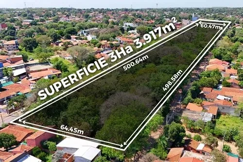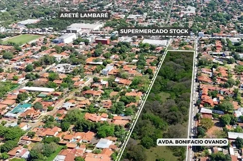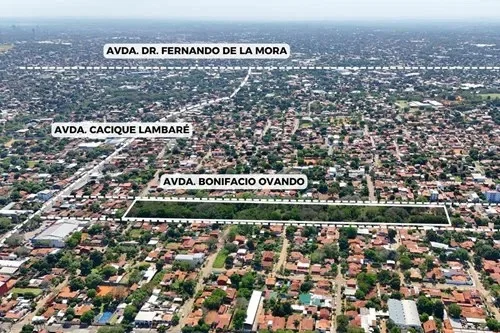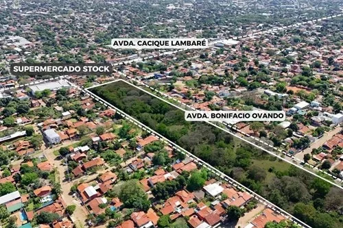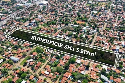 Espectacular terreno con salida de calle a calle, de 33.917m² en la ciudad de Lambaré. Ubicado sobre la Avenida Bonifacio Ovando c/ Rio Pilcomayo. A 1 cuadra de la Avda. Cacique Lambaré. Ideal para barrio cerrado, complejo logistico, desarrollo comercial, loteamiento, etc. Proximo a Shopping Century Plaza, Supermercado Superseis, Supermercado Areté, Colegio Politécnico Johanes Gutenberg. ???? Dimensiones: - Sobre la Avda. Bonifacio Ovando: 498,58 m - Sobre la calle Mayor María Mazó: 500,64 m - Costado sobre la calle Rio Pilcomayo: 64,45 m - Contracostado: 60,47 m ???? Ubicación: https://maps.app.goo.gl/1HqepjU6DnKDBX6J9