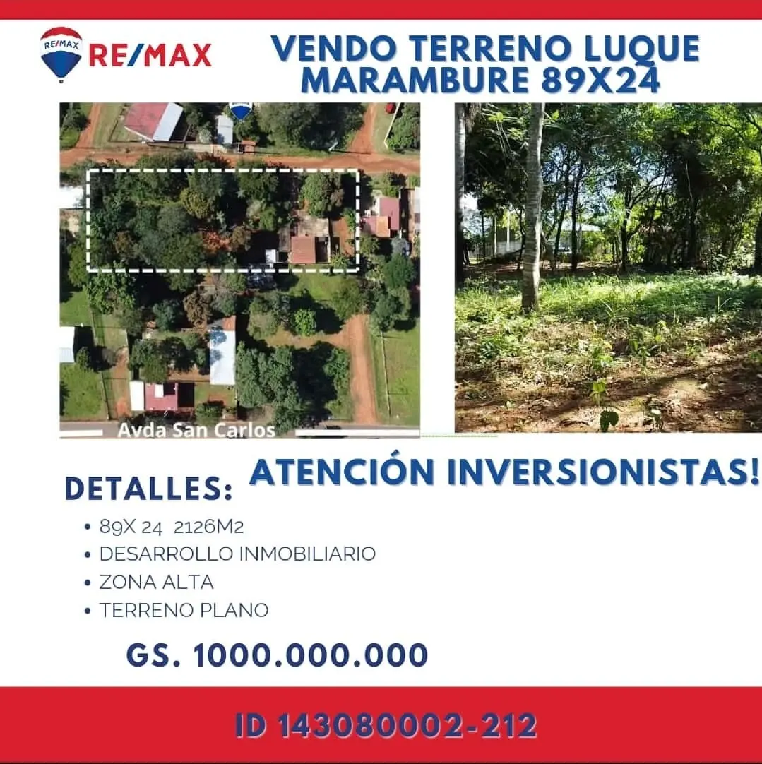 VENDO TERRENO MARAMBURE LUQUE 2.126M2-89x26