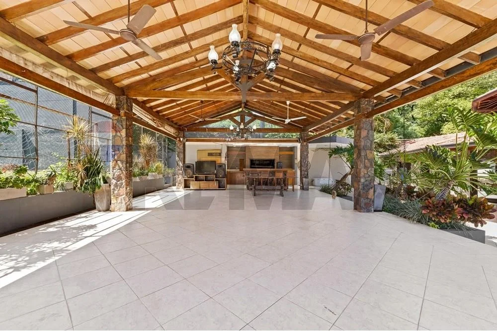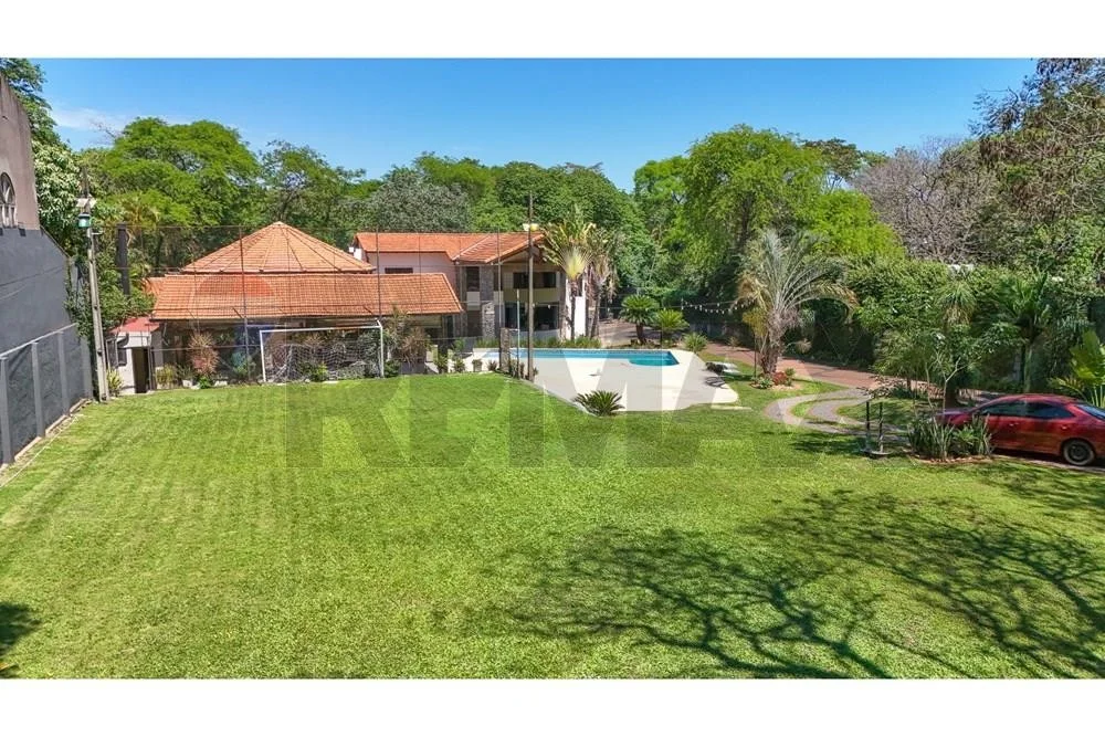 Al frente de la casa un hermoso y amplio quincho con parrilla con vista a la piscina y cancha de futbol