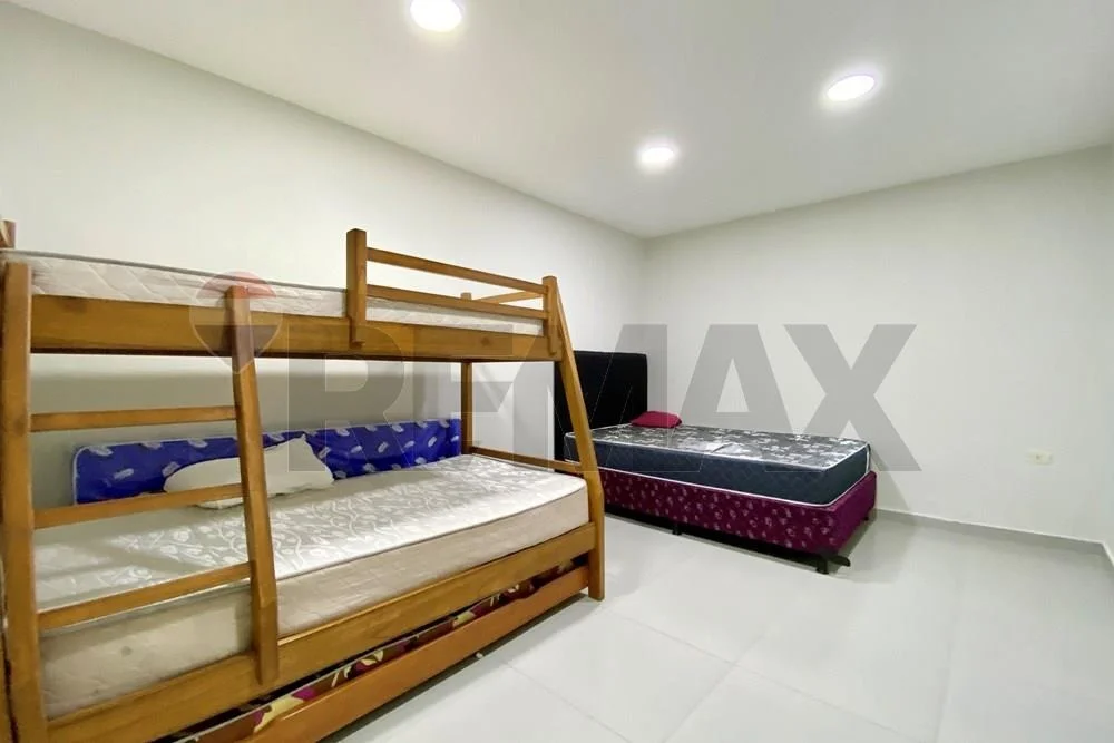 La distribución interna prioriza la amplitud de la sala climatizada y la independencia de sus cuatro dormitorios, optimizando la operatividad de la vivienda para familias numerosas o grupos corporativos.