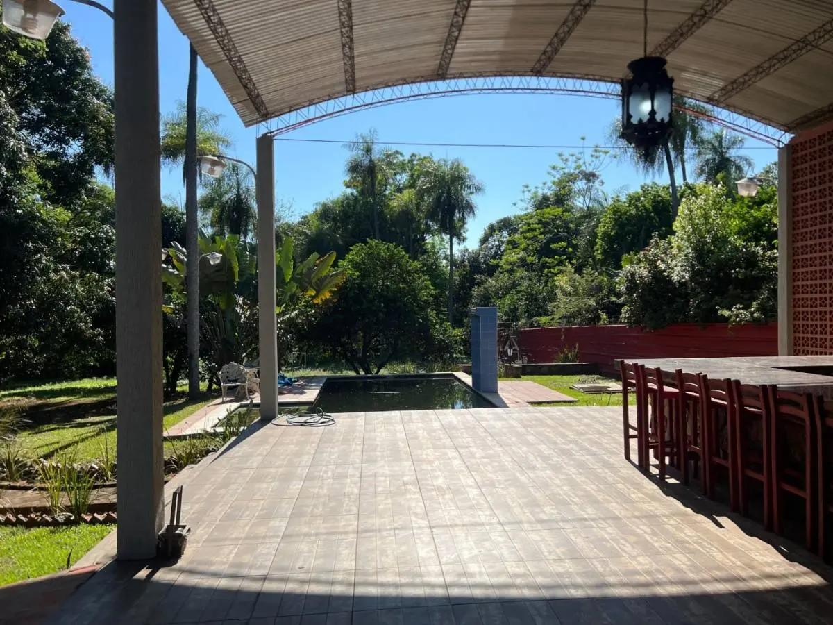 Quincho: tipo tinglado (amplio) con mesada de mármol en cascada; parrilla de acero inoxidable; baño moderno con mesada de mármol y puerta granero; con asiento azulejado de material en L (tipo cajonera para guardar cosas); mesa larga. Quincho con vista panorámica al patio, piscina, y al área de fútbol y parque infantil.