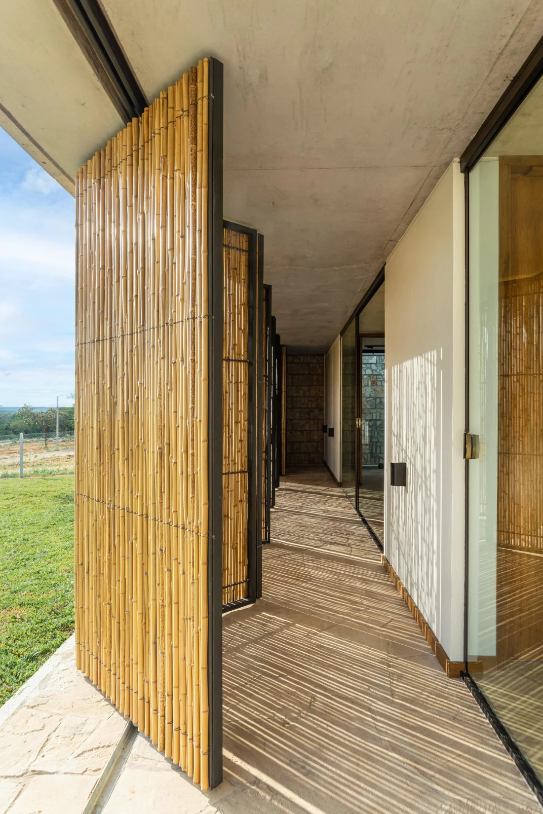 • Parasol de tacuarillas orientado al oeste, que regula la luz y protege la privacidad de las 3 habitaciones en suite