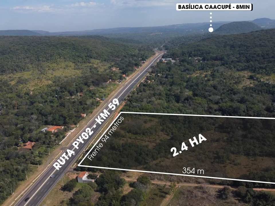 En venta 2.4 Hectáreas en Caacupé sobre Ruta 2 - Km 59