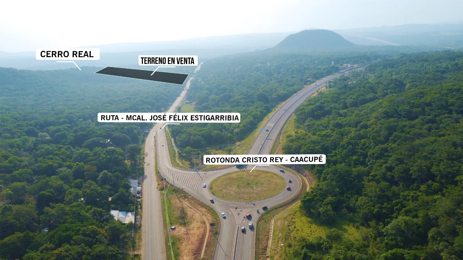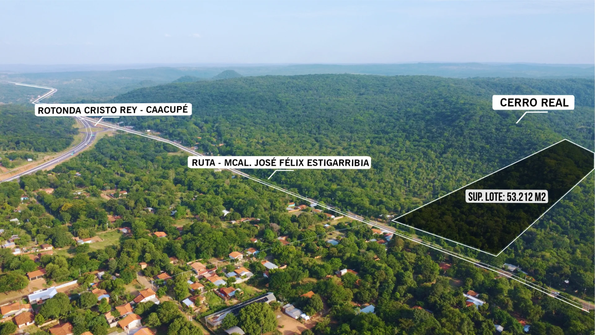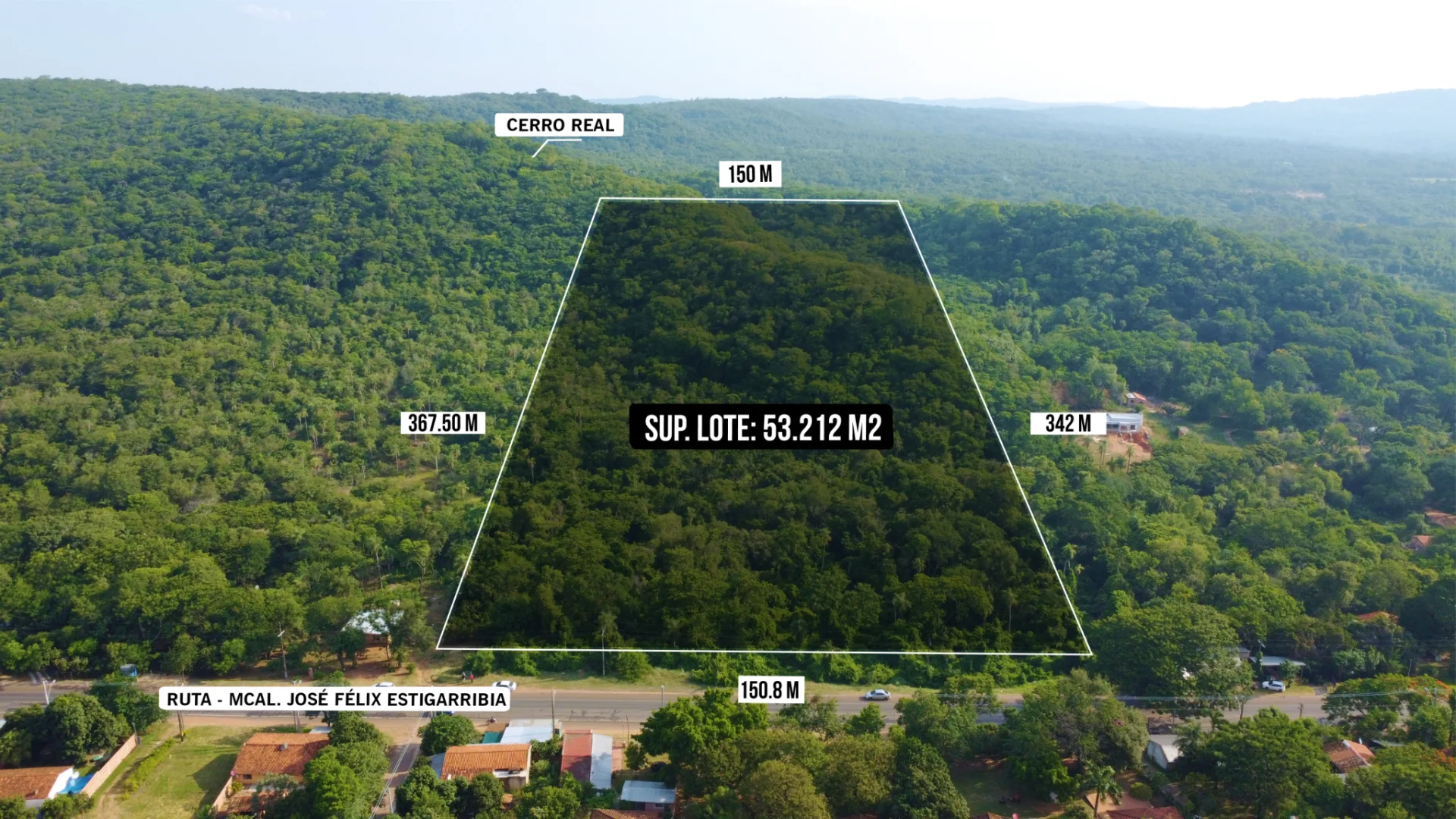 El frente es de 150 mts ubicado sobre la ruta Mcal. José Félix Estigarribia, a 800 mts de la rotonda Cristo Rey y a solo 6 min del centro de Caacupé.