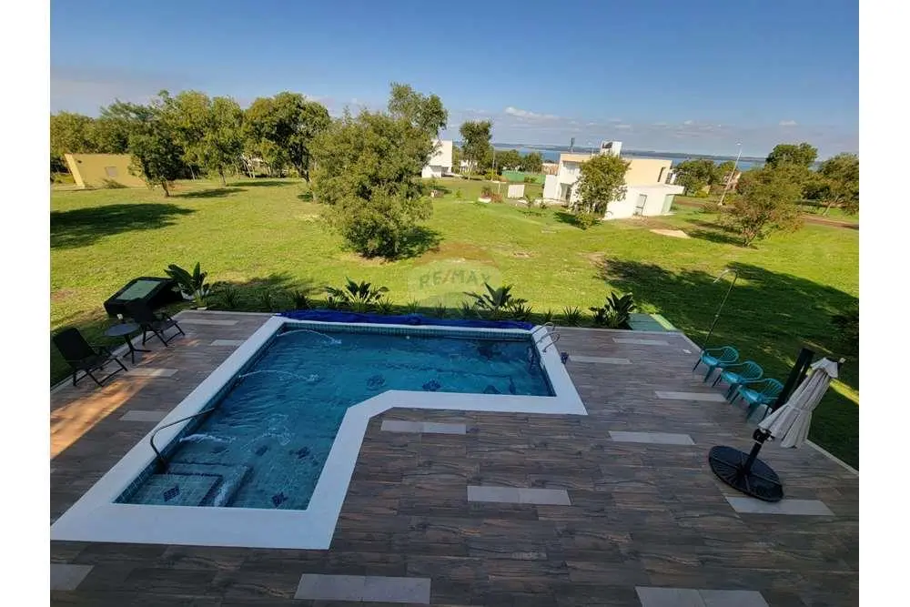 Piscina y área de esparcimiento.