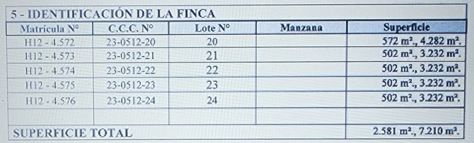 Superficie total: 2.581 m²